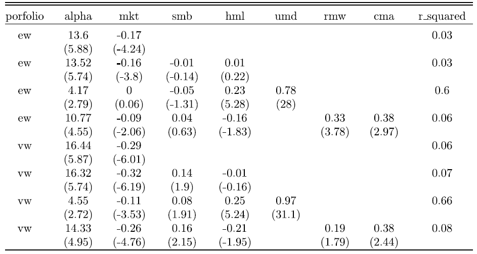 This article also attempts to extend the strategy by using Fama-French five-factor model to produce idiosyncratic momentum. However, it was discovered that this method is inferior to the idiosyncratic momentum produced by Chaves.
